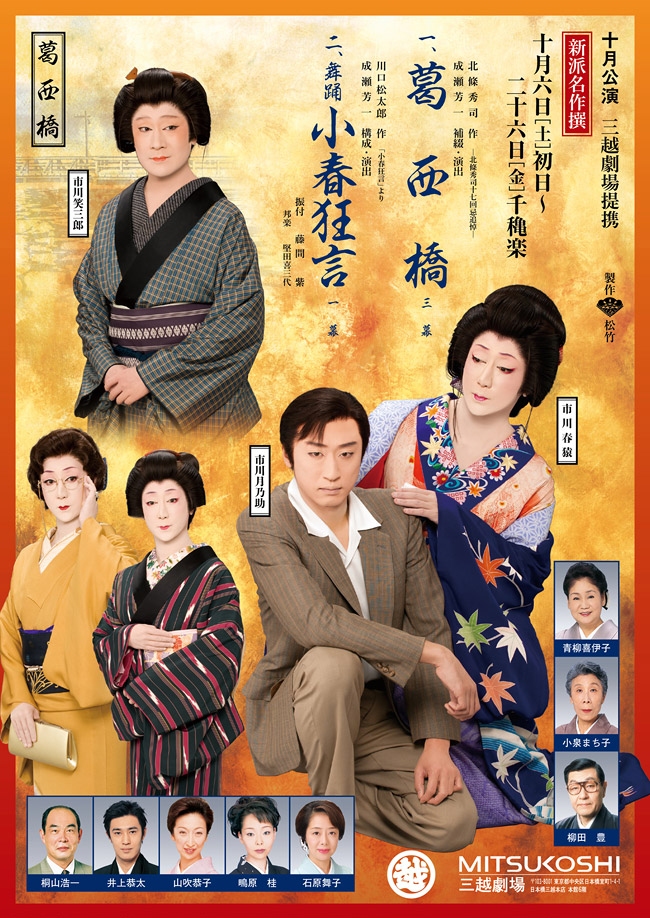 新派名作撰『葛西橋/舞踊 小春狂言』に笑三郎、春猿、月乃助が出演します