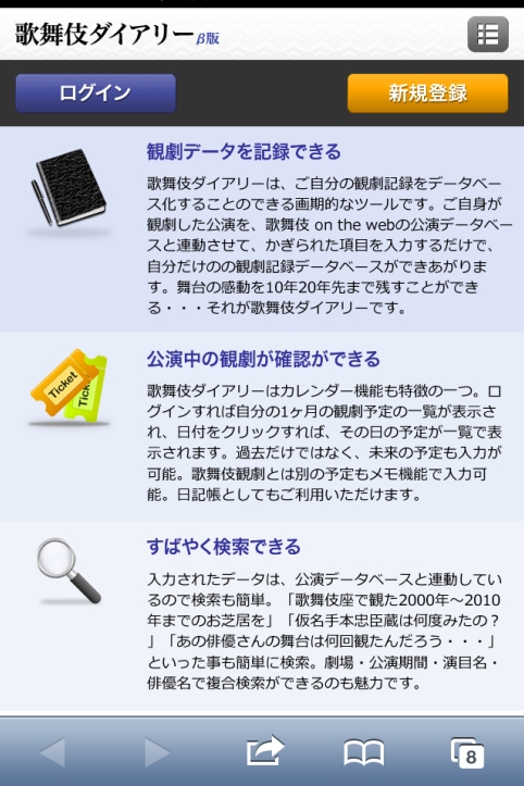 観劇直後の移動中など、モバイルの環境でも登録や閲覧が簡単になります。ぜひご利用下さい。