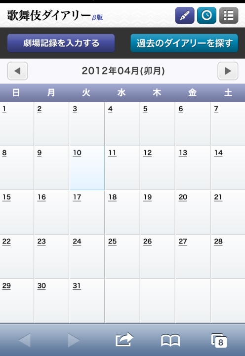 「歌舞伎ダイアリー」にiPhoneでアクセスすると、iPhoneの画面に最適化された専用画面が現れます。