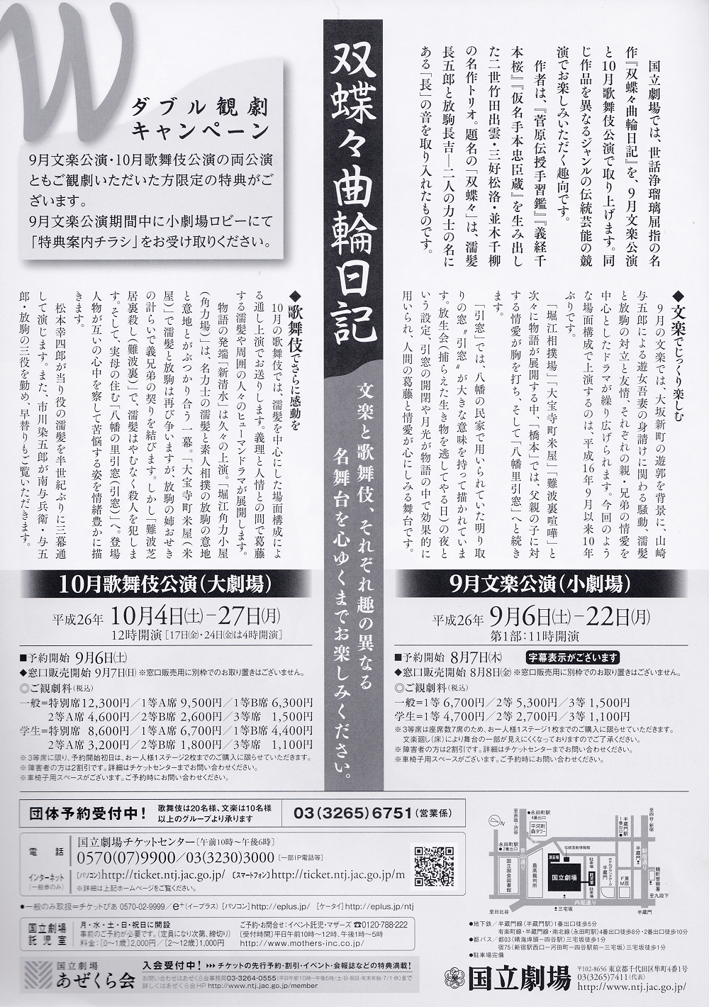 『双蝶々曲輪日記』ダブル観劇キャンペーン~国立劇場 9月文楽公演・10月歌舞伎公演