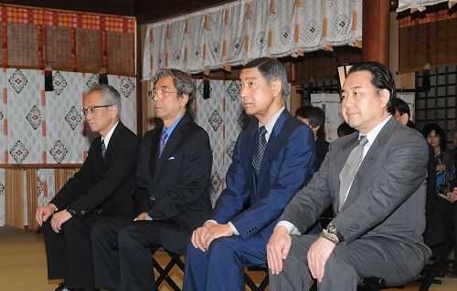 公演に先立ち中村梅玉、中村魁春、中村鴈治郎が“東京のお伊勢さま”として親しまれている東京大神宮で成功祈願を行い、思いを語りました。