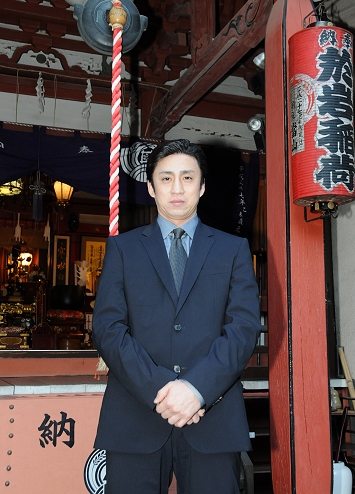 通し狂言 東海道四谷怪談』でお岩・小平・与茂七・大星由良之助の四役を勤める市川染五郎が、お岩にゆかりの妙行寺、田宮神社、陽運寺を訪れ、舞台の安全と成功を祈願しました。