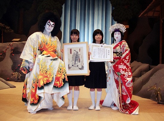 6月22日、国立劇場の「歌舞伎鑑賞教室」の入場者数が500万人に達し、茂木賢三郎(日本芸術文化振興会理事長)、片岡孝太郎、片岡愛之助が公演終了後の舞台上で、500万人目に当たる生徒に感謝状と記念品を贈呈しました。