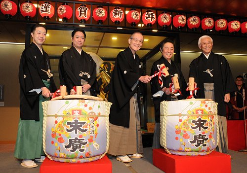 菊五郎、時蔵、松緑、菊之助が鏡開き~国立劇場 通し狂言『四天王御江戸鏑』~