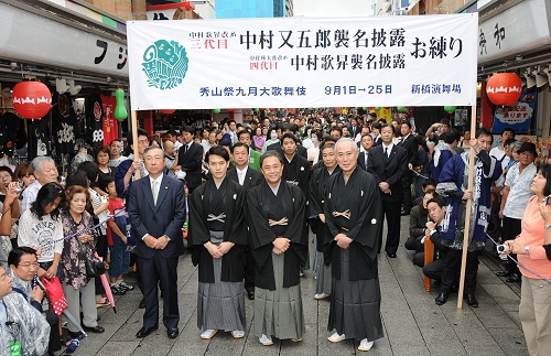中村種太郎 このようにお練りをさせていただくことができるのも、色々な方々のお力があっての事です。感謝の気持ちを持ち、一所懸命舞台を勤めることが皆様への一番の恩返しになると思っております。本日、沢山の方のご声援をいただき、本当に責任感が増してきました。父の名前を襲名するからには、父を超えられるように、ますます精進していきたいと思っています。