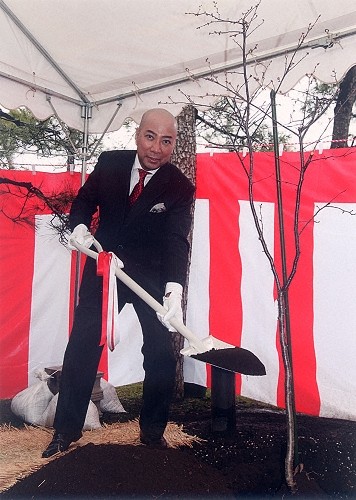 團十郎が国立劇場前庭に「熊谷桜」を植樹