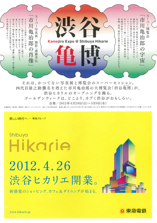 「渋谷ヒカリエ」の公式オープニングイベントとして行われる、四代目 市川猿之助襲名記念「二代目 市川亀治郎大博覧会」(渋谷亀博)の概要が決まり、公式サイトがオープンしました。