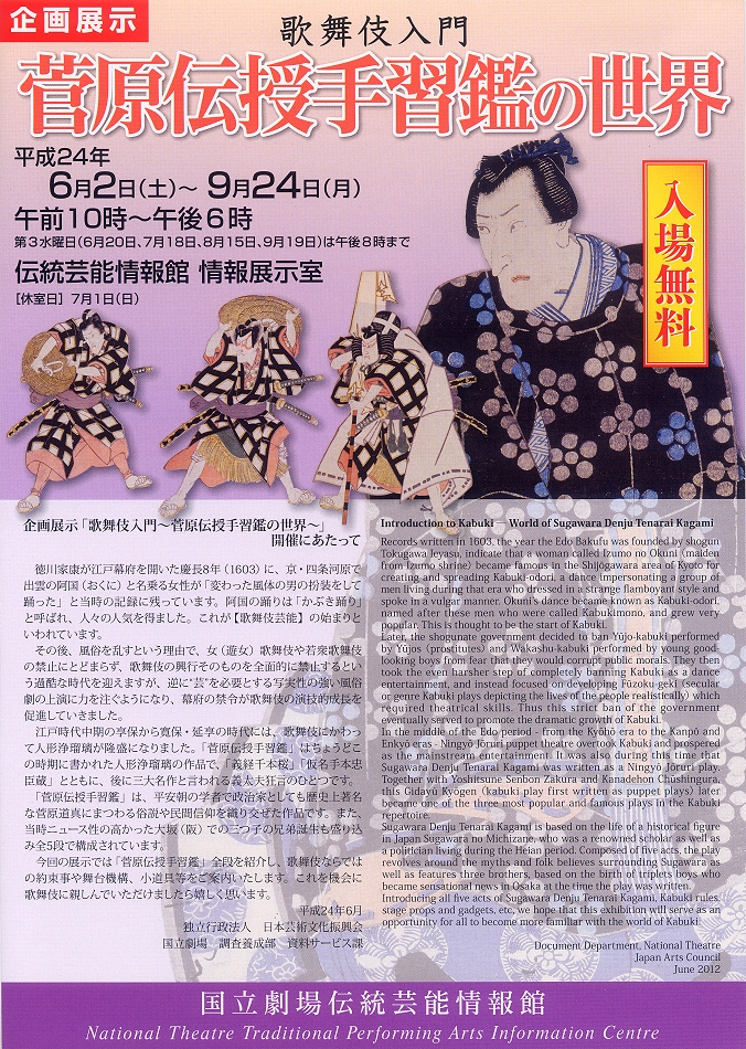 6月2日(土)より、国立劇場伝統芸能情報館1階情報展示室で、企画展示「歌舞伎入門~菅原伝授手習鑑の世界~」が開催されています。