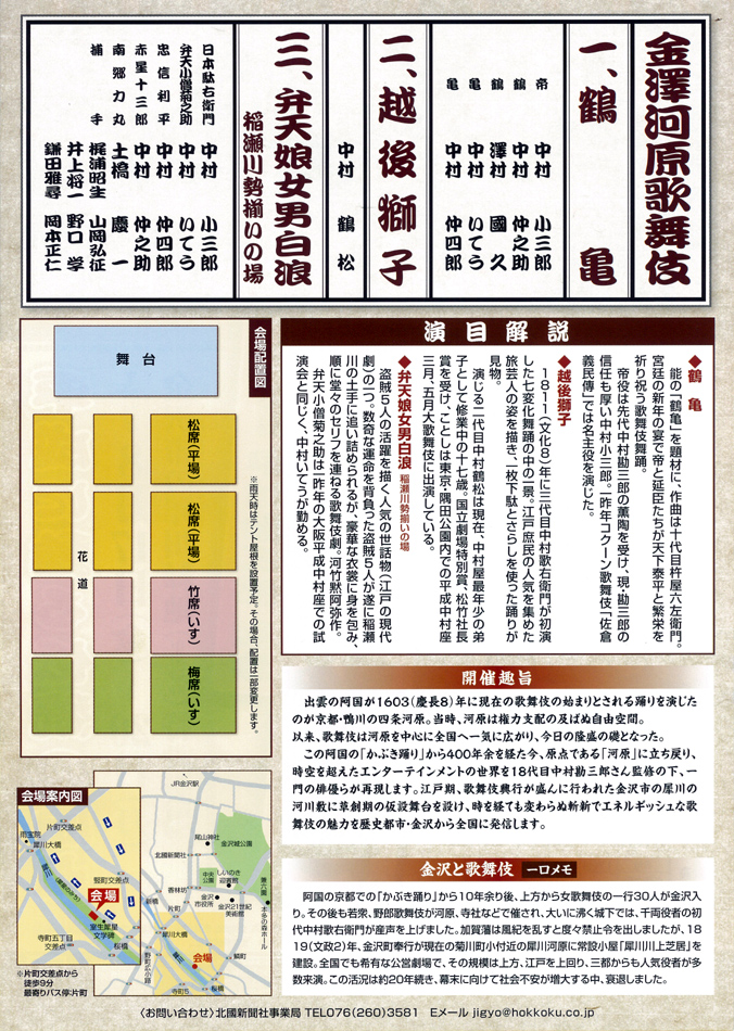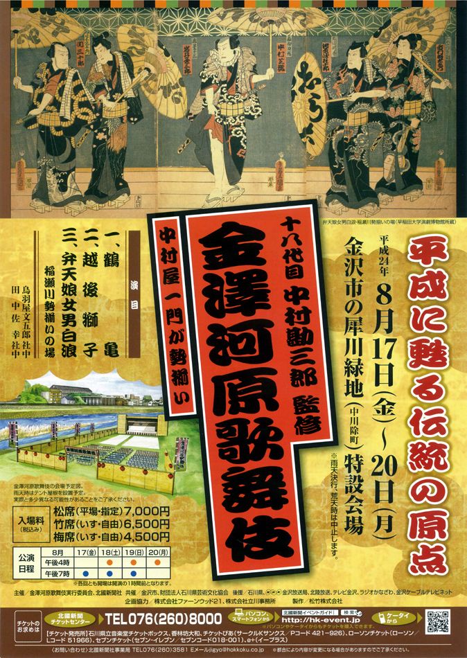 2012年8月17日(金)~20日(月)に、石川県金沢市の犀川緑地(中川除町)特設会場で、中村屋一門による「十八代目