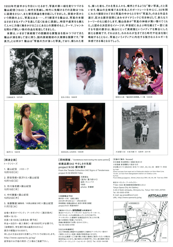 また、関連企画として、篠山紀信とゲストのトークシリーズが全5回開催されます。第3回(10月18日)に市川海老蔵、第4回(10月25日)に中村獅童が出演します。こちらは事前申込制となっています。