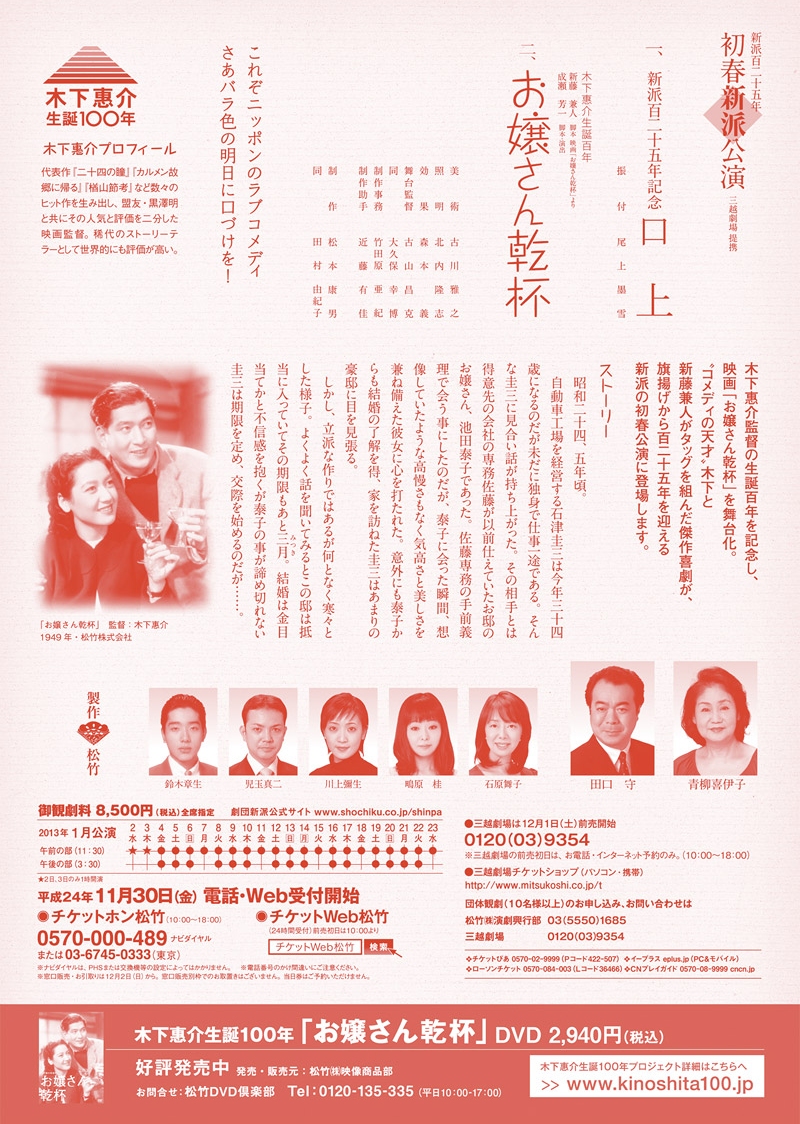 2013年1月2日(水)~23日(水)三越劇場、新派百二十五年 初春新派公演『お嬢さん乾杯』に、