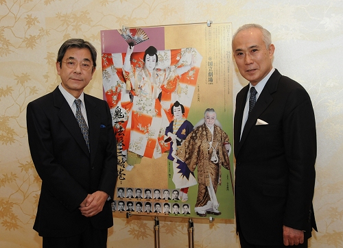 公演に先立ち、吉岡鬼一・一條大蔵卿長成を勤める中村吉右衛門、そして虎蔵実ハ牛若丸・吉岡鬼次郎を勤める中村梅玉が思いを語りました。