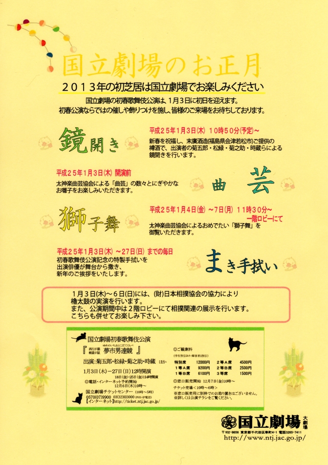 初春歌舞伎公演」では、初春公演ならではの催しや飾りつけをし、お客様のご来場をお待ちしています。●鏡開き