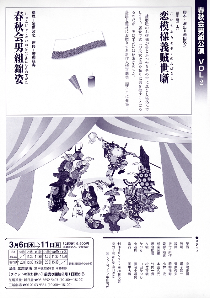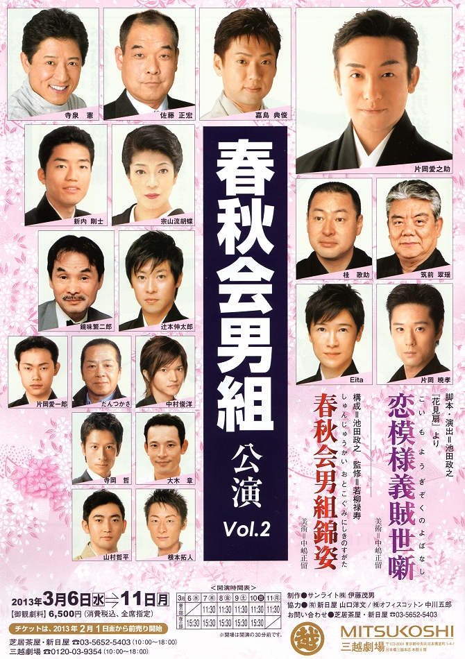 2013年3月6日(水)~11日(月)三越劇場で開催される「春秋会男組公演 Vol.2」に、