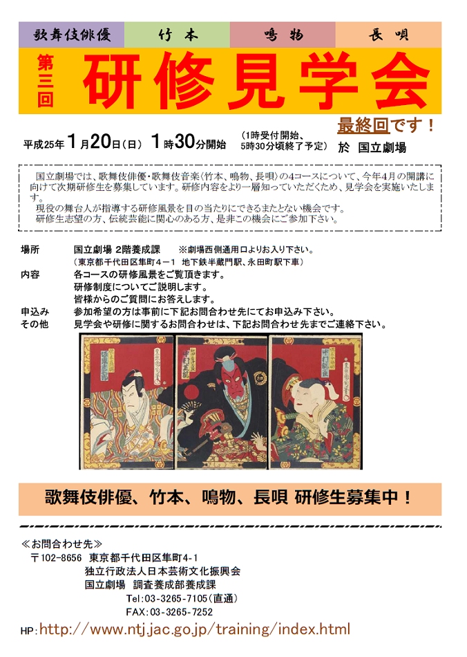 【最終回】国立劇場「第3回研修見学会」開催のお知らせ