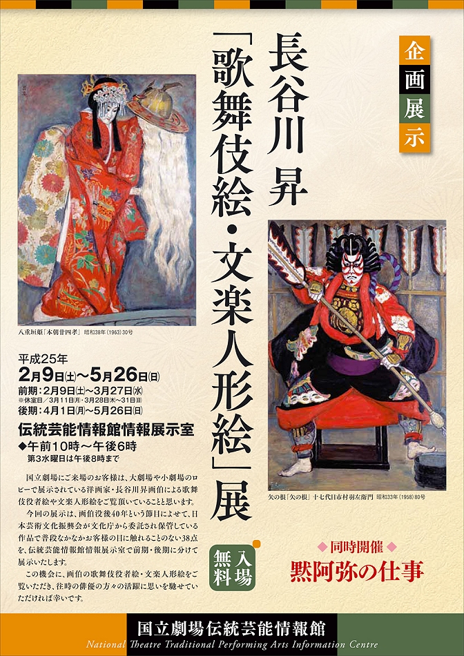 伝統芸能情報館 企画展示 長谷川昇「歌舞伎絵・文楽人形絵」展 同時開催 「黙阿弥の仕事」のお知らせ