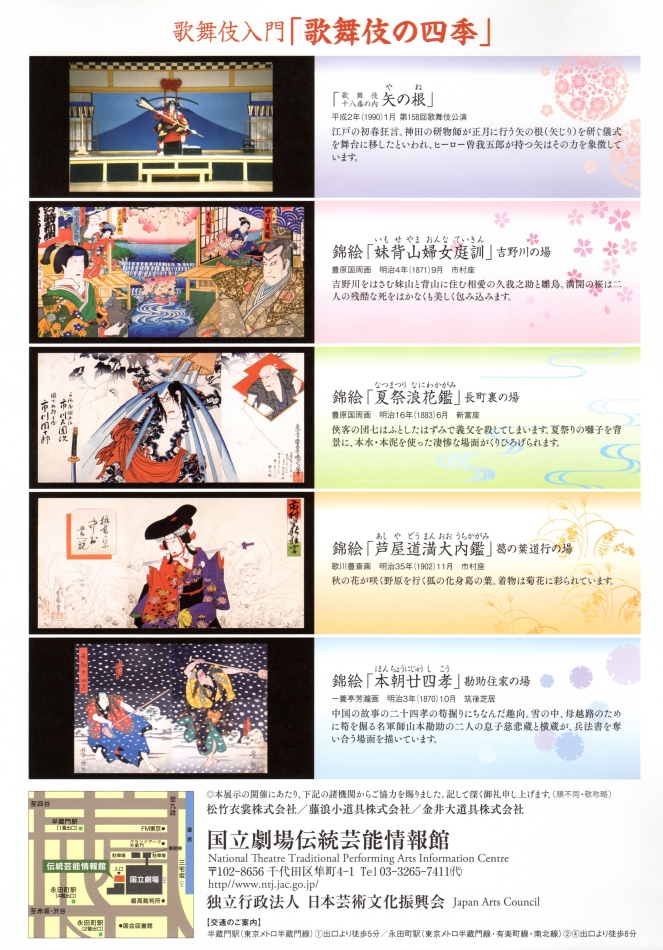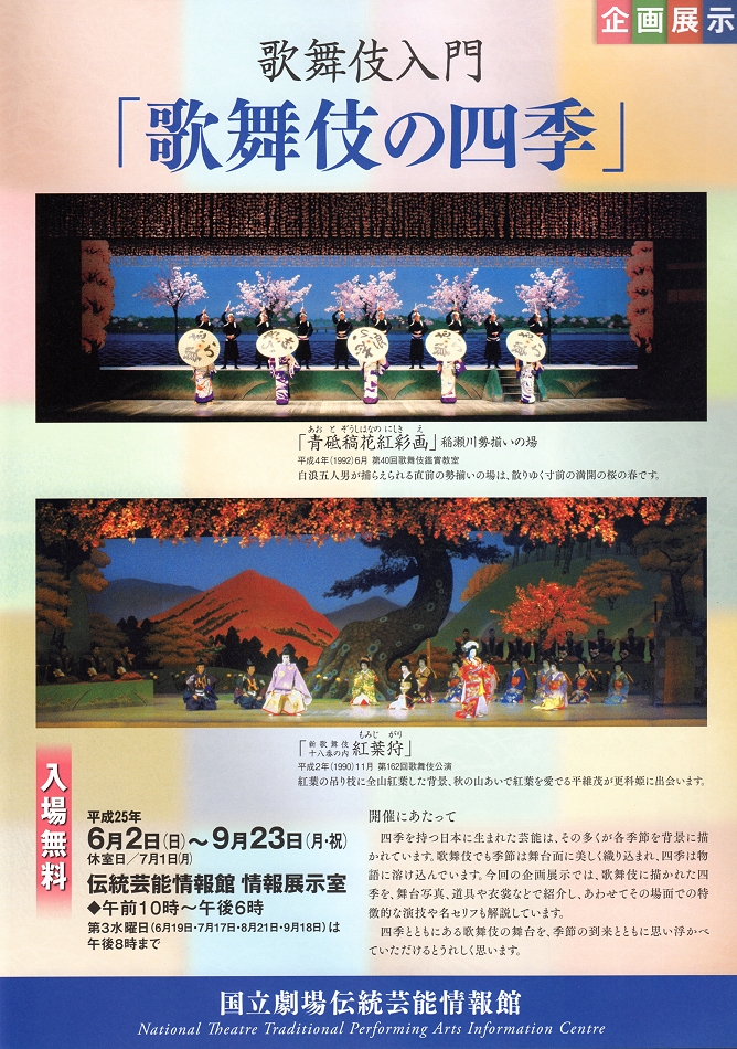 6月2日(日)より、国立劇場伝統芸能情報館1階情報展示室で、企画展示「歌舞伎入門-歌舞伎の四季-」が開催されています。