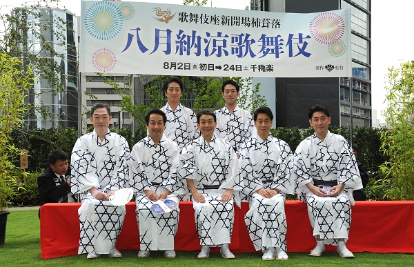 歌舞伎座新開場柿葺落八月納涼歌舞伎」が上演されます。歌舞伎座の夏芝居として広く親しまれてきた「納涼歌舞伎」、新しい歌舞伎座では初めての公演となります。公演に先立ち、納涼にふさわしく俳優たちが揃いの浴衣を着てお目見えし、意気込みと七夕を前に短冊に書いた願い事を披露しました。