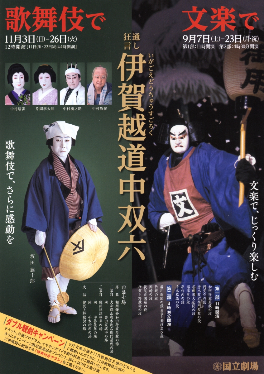 ダブル観劇キャンペーンのお知らせ~国立劇場「通し狂言 伊賀越道中双六」