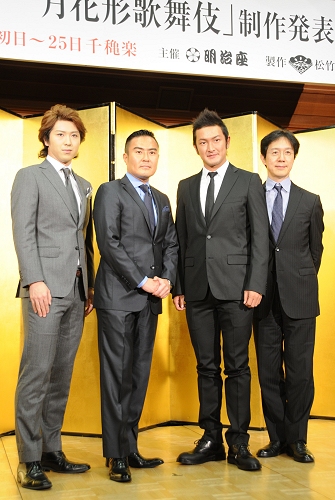 公演に先立ち制作発表が行われ、中村獅童、市川右近、市川笑也、尾上松也が意気込みを語りました。