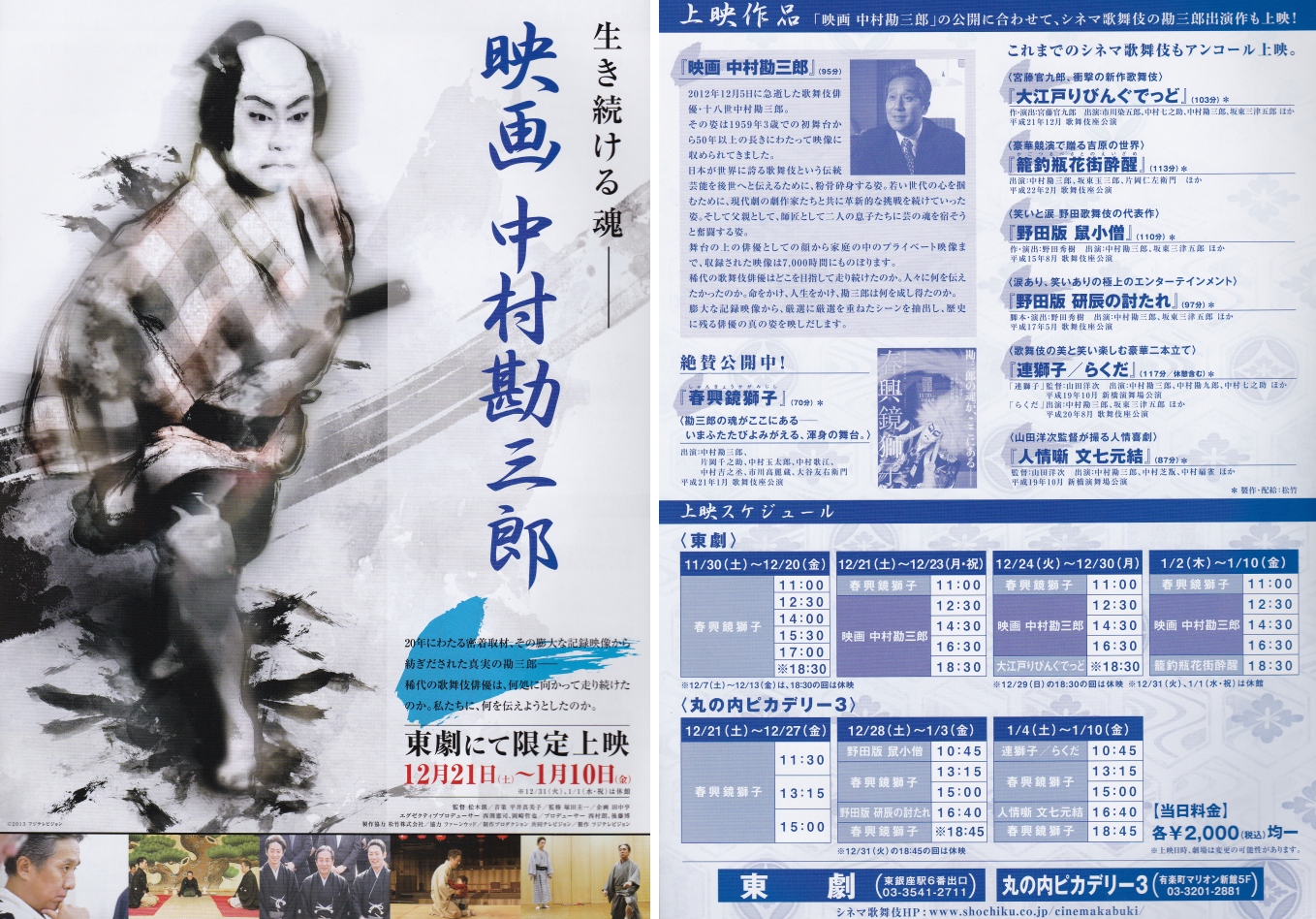 映画 中村勘三郎」が、12月21日(土)より東劇にて上映されています。