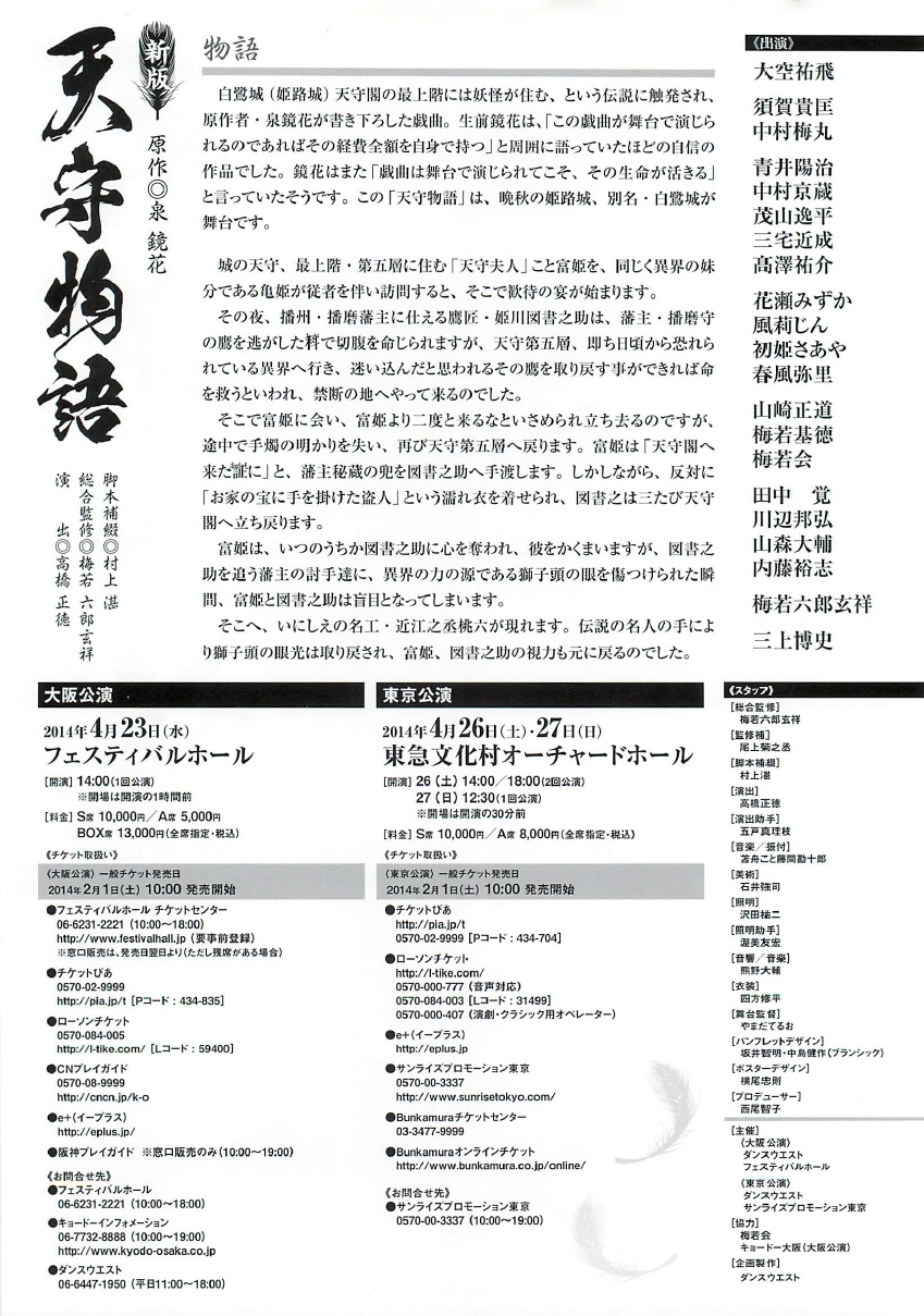 4月23日(水)フェスティバルホール(大阪公演)、26日(土)27日(日)東急文化村オーチャードホール(東京公演)で上演される『天守物語』に、中村梅丸、中村京蔵が出演します。