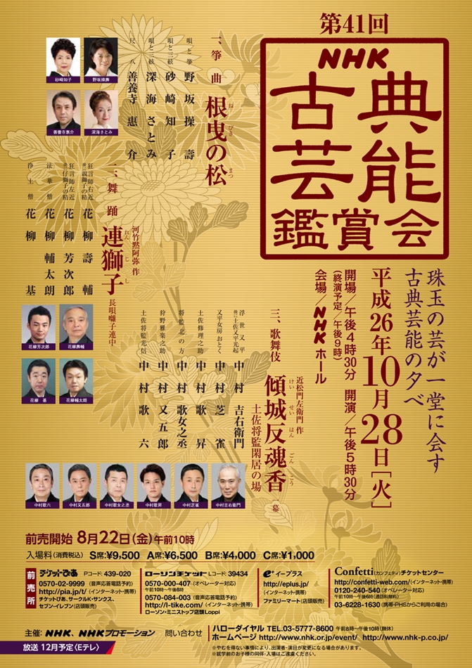 「第41回 NHK古典芸能鑑賞会」が、10月28日(火)に開催されます。