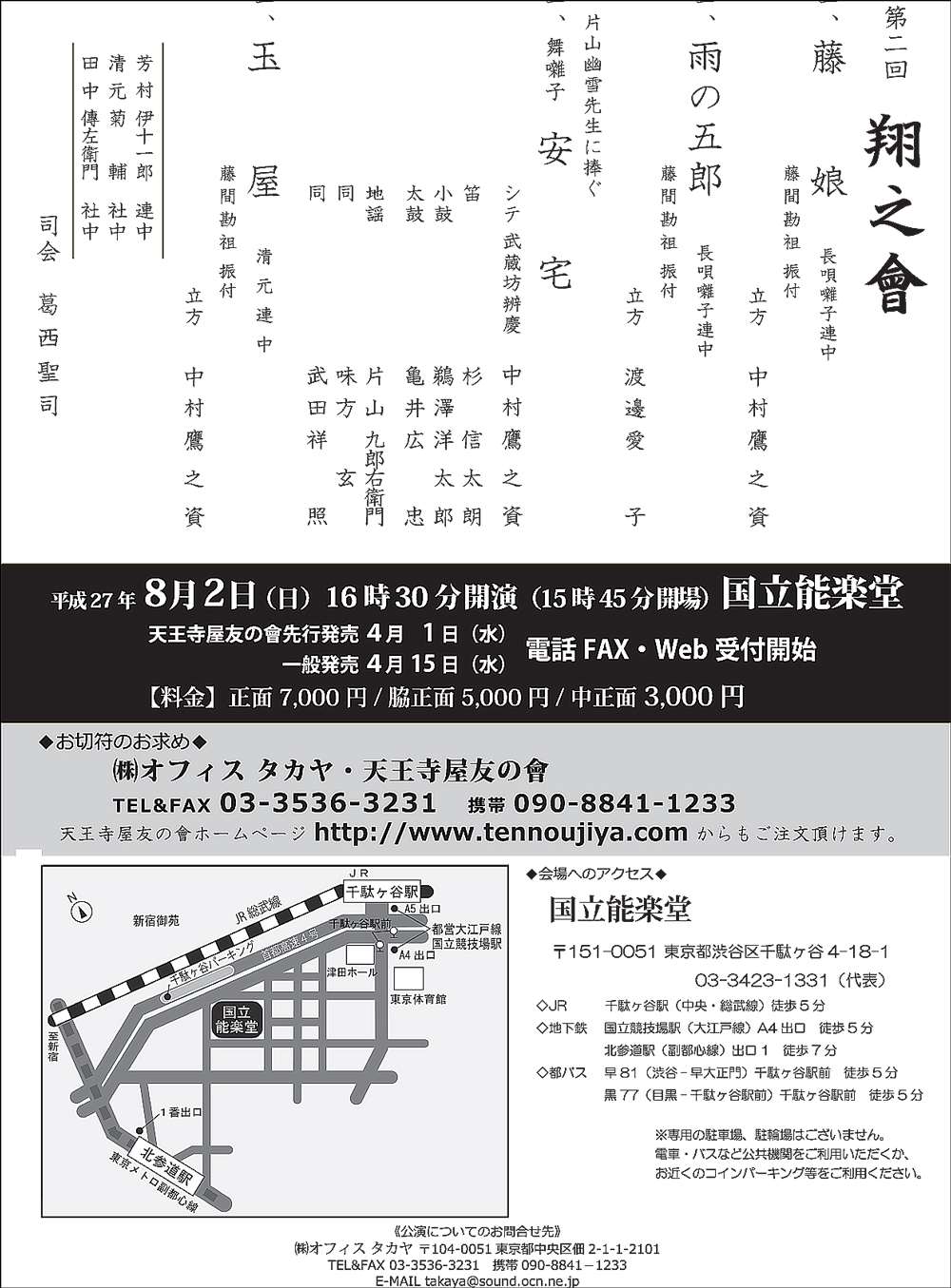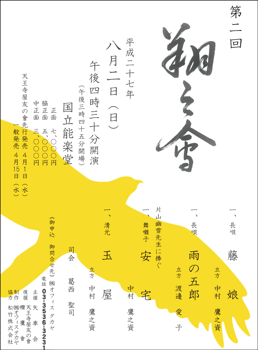 > 中村鷹之資「第二回 翔之會」が開催されます