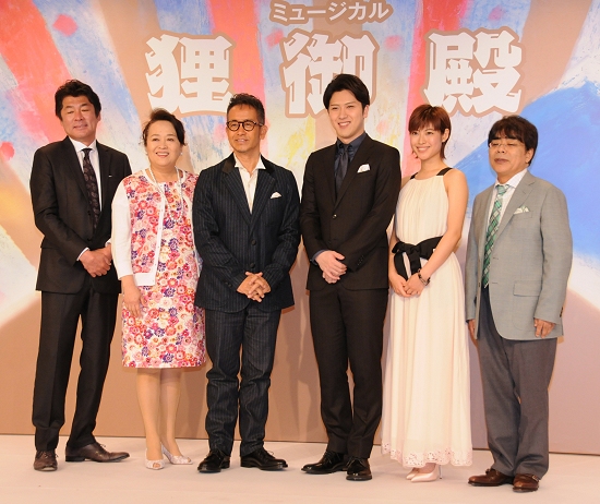 ミュージカル 狸御殿』(8月1日~27日)。公演に先立ち記者会見が行われ、尾上松也、瀧本美織、赤井英和、小倉久寛、渡辺えり、宮本亜門(演出)が意気込みを披露しました。