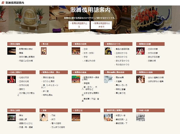 今回の公開で434用語が揃いました!公開中の全リストは“「歌舞伎用語案内」の歩き方 ”ページ最下部のPDFからご覧いただけます。