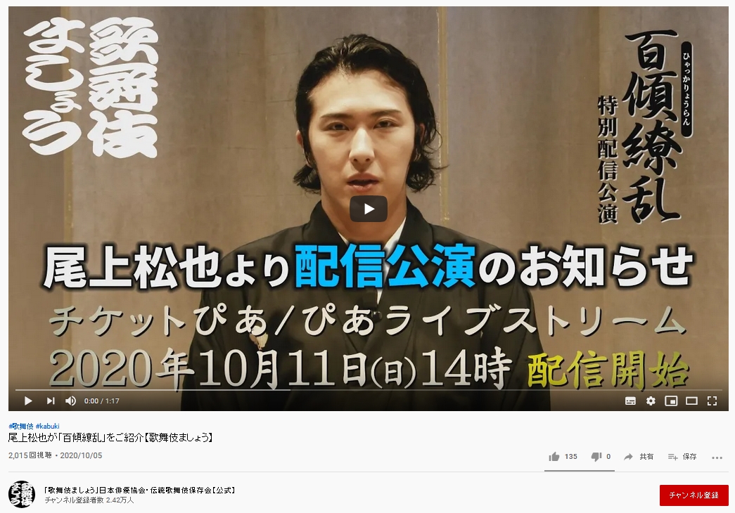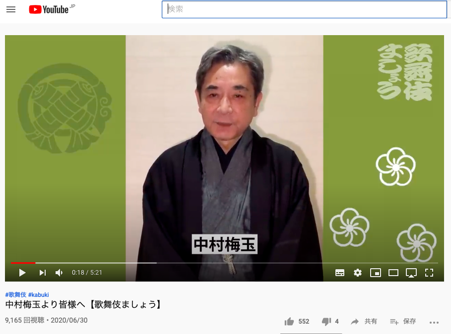 YouTubeチャンネル「歌舞伎ましょう」動画第6弾を公開しました 2020.07.05発表・会見