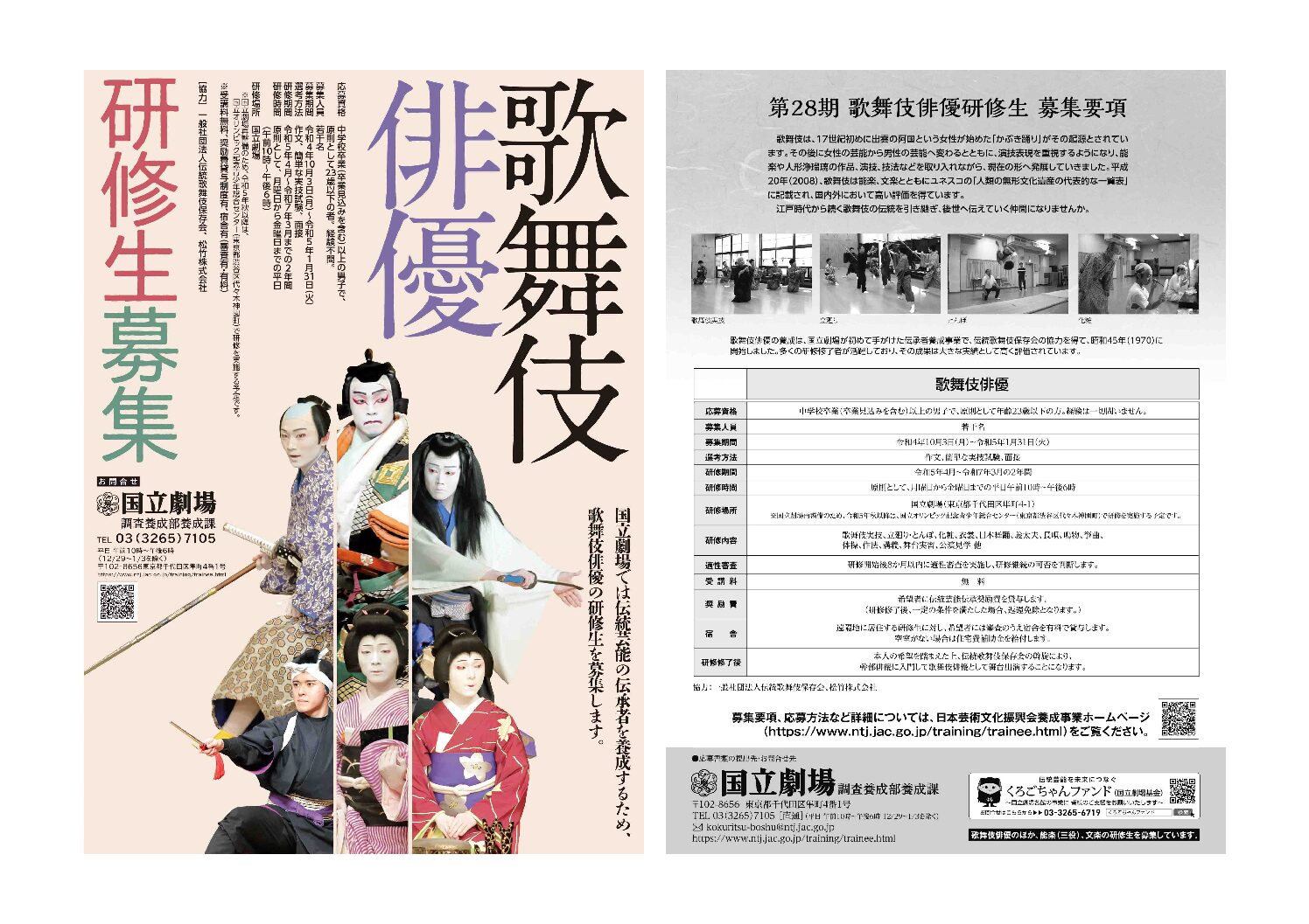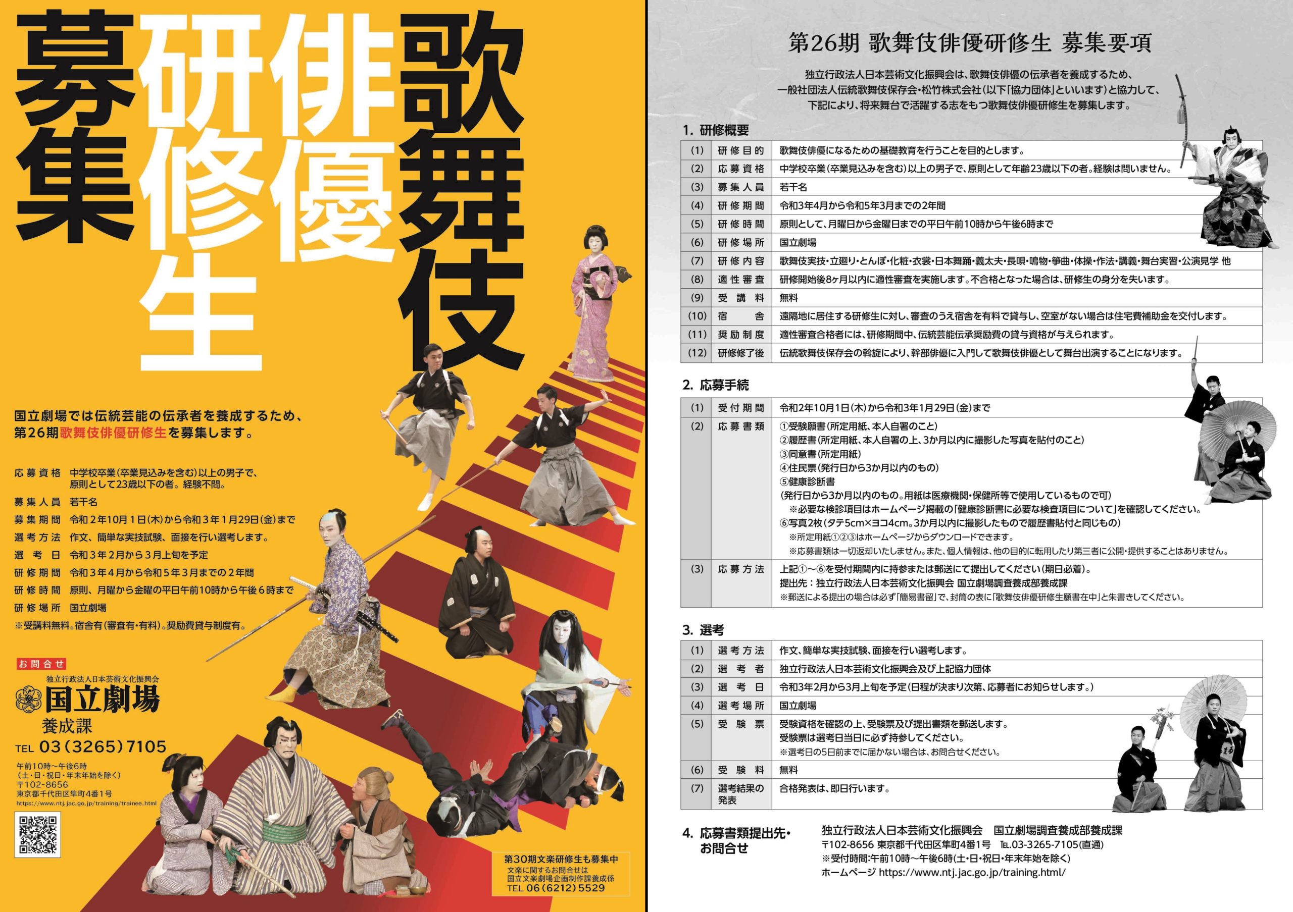 日本芸術文化振興会が歌舞伎俳優の研修生を募集しています 2023.10.04募集ほか