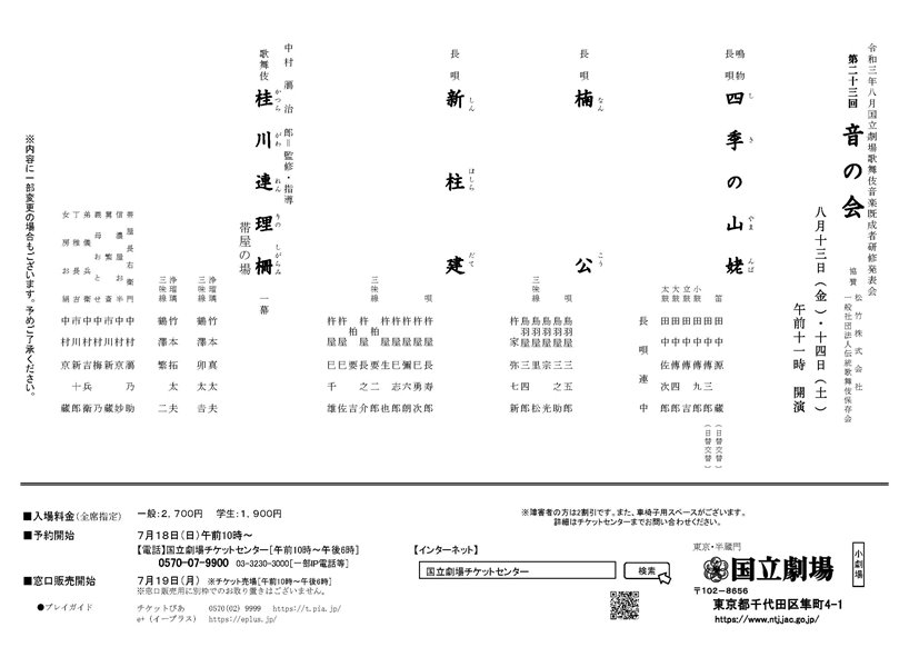 【終了】歌舞伎音楽 長唄研修生を募集しています 2025.02.21募集ほか