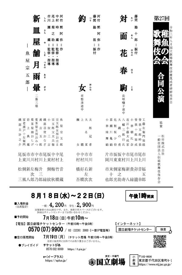【終了】「第29回稚魚の会・歌舞伎会合同公演」が開催されます 2023.06.21勉強会