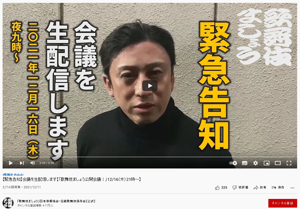 日本俳優協会と伝統歌舞伎保存会がYouTubeチャンネル「歌舞伎ましょう」を開設 2020.05.28発表・会見