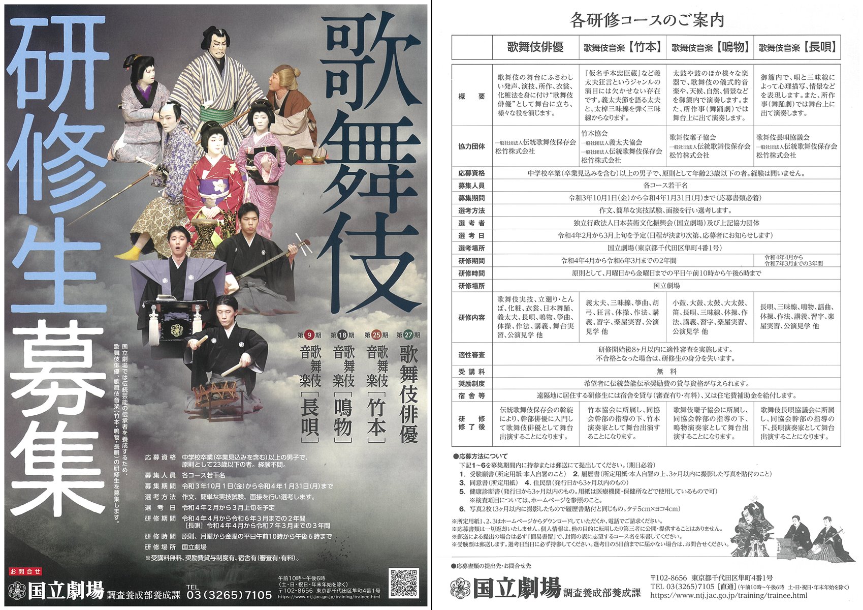 【募集は終了しました】日本芸術文化振興会が歌舞伎俳優・歌舞伎音楽の研修生を募集します 2019.11.01募集ほか