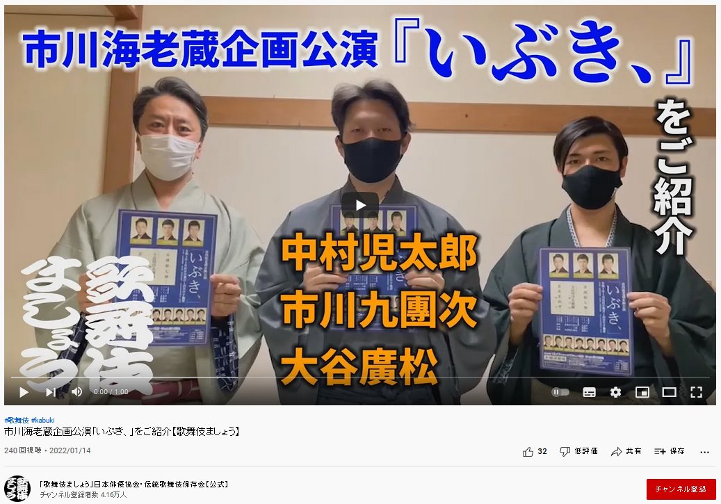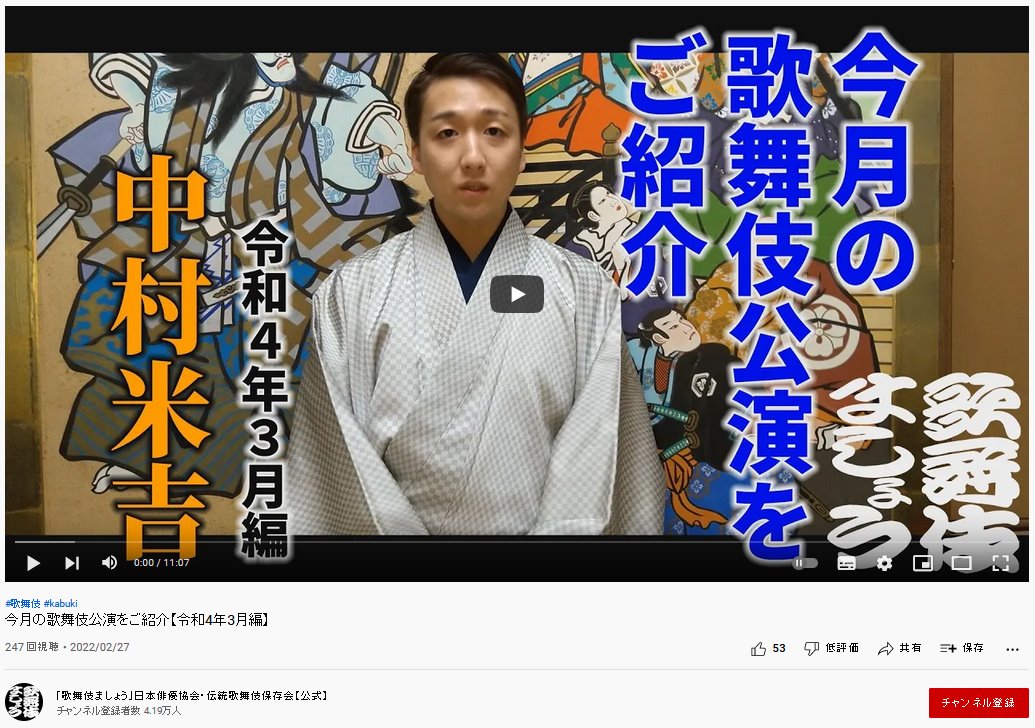 YouTubeチャンネル「歌舞伎ましょう」動画第3弾を公開しました 2020.06.09発表・会見