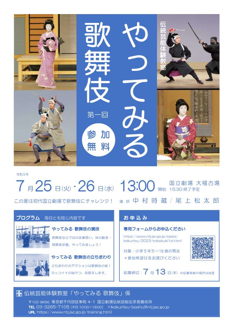【終了】伝統芸能体験教室「やってみる 歌舞伎」が開催されます 2023.06.21勉強会