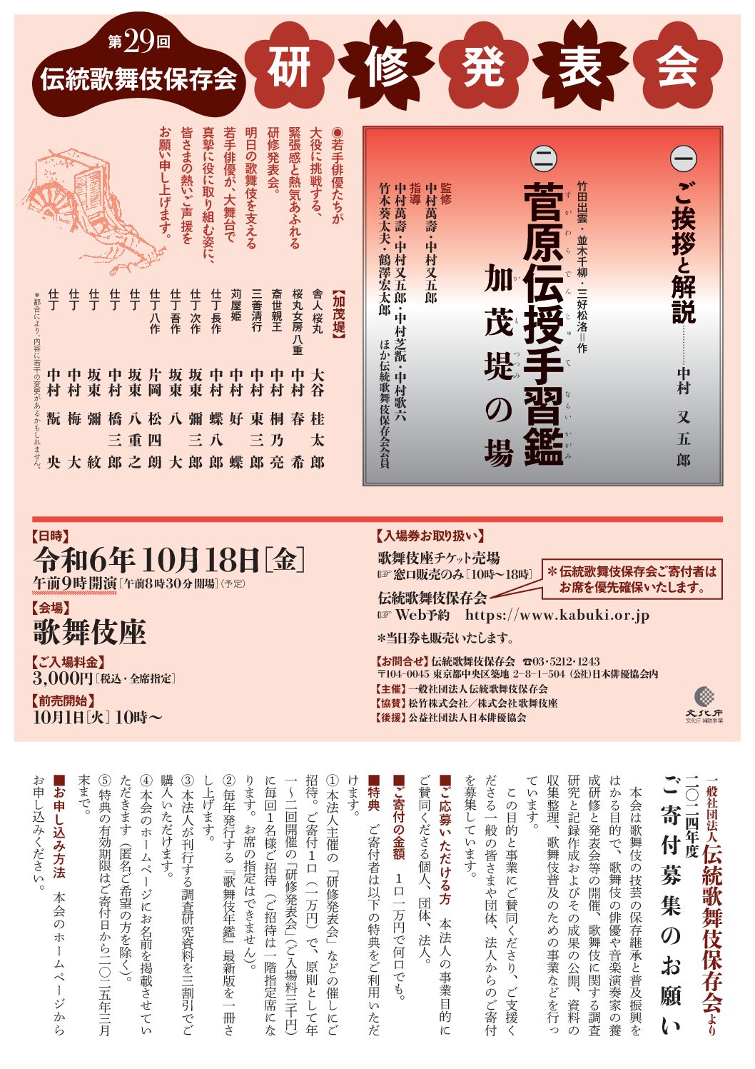 新国立劇場 歌舞伎公演におけるチャリティー募金のお知らせ 2024.01.16発表・会見