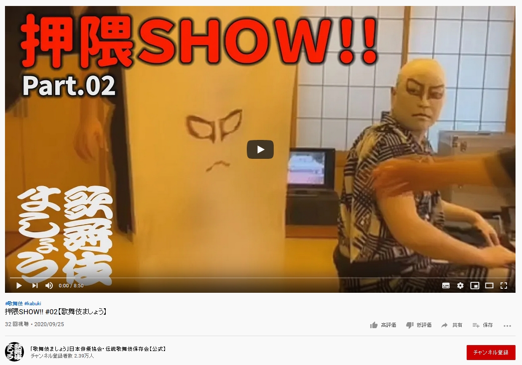 YouTubeチャンネル「歌舞伎ましょう」動画第33弾を公開しました