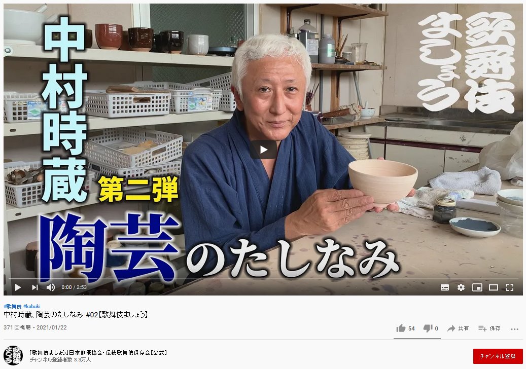 今回は中村時蔵が10年近く取り組んでいるという趣味の陶芸を紹介する動画の第2弾です。