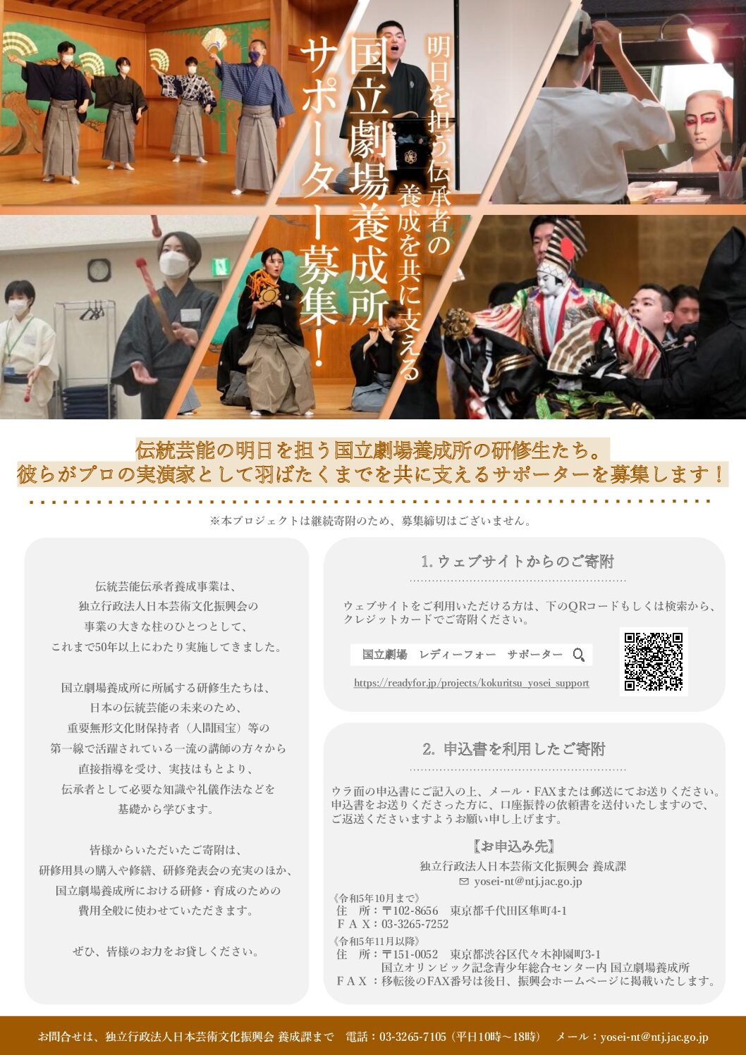 「国立劇場養成所サポーター」(継続寄附)を募集することになりました。